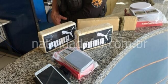 Após buscas, os agentes encontraram nos pertences dos homens – que apresentaram grande nervosismo durante a abordagem – dois tabletes com 2.080 gramas de pasta base de cocaína, além de outro tablete e frações, totalizando quase um quilo de maconha e duas balanças de precisão.