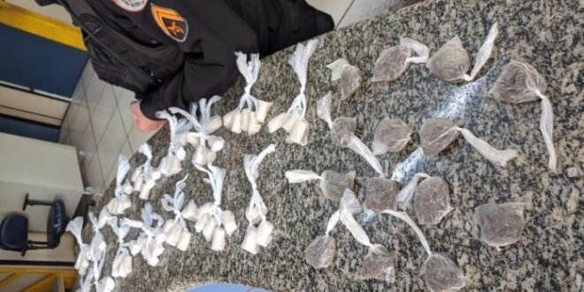 Na manhã desta sexta-feira (03), militares do 29º BPM descobriram esconderijo de drogas no bairro Frigorifico, Itaperuna. Alertados através de denúncia, os agentes se deslocaram a até a comunidade onde após buscas no ponto indicado, uma obra em andamento, os agentes encontraram junto ao monte de areia, 67 pinos de cocaína e 14 pequenos tabletes de maconha. Nenhum suspeito chegou a ser identificado ou detido e a 143ª DP, registrou.