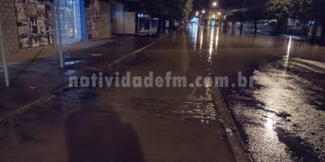 Na Avenida Mauro Alves Ribeiro Júnior a lâmina de água que se formou na pista seguem aumentando. Por volta das 21h, automóveis já enfrentam dificuldades para atravessar a via, única ligação com o Hospital da cidade e o município de Porciúncula.