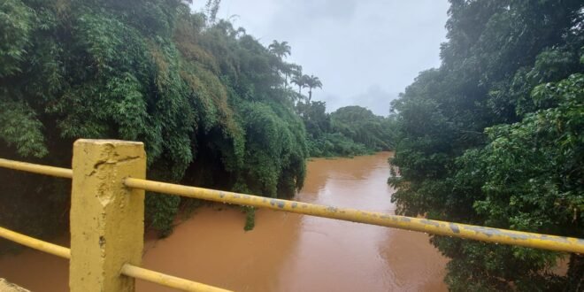 Rio Carangola transborda inunda ruas de Porciúncula, onde famílias já estão desalojadas/desabrigadas