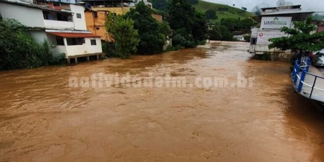 Na cidade mineira de Carangola o nível do rio baixou aproximadamente 40 centímetros durante esta madrugada. Veja os números: