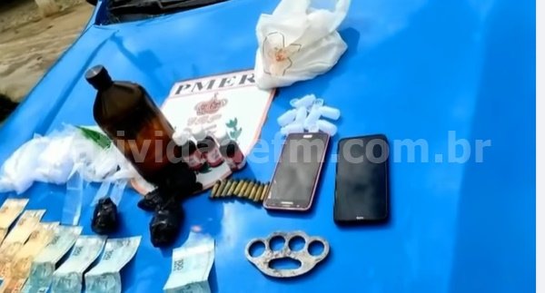No local, que fica na Rua Antônio da Silva Campos, os agentes encontraram dois tabletes com 51 gramas de maconha, sacolés e embalagens vazias, R$ 550 em dinheiro, dez munições calibre 38, além de dois telefones celulares que deverão ser periciados. O homem que seria o alvo da ação, não se encontrava e uma mulher de 34 anos, foi apresentada na central de flagrantes da 143ª DP/Itaperuna, autuada posse de drogas e liberada.