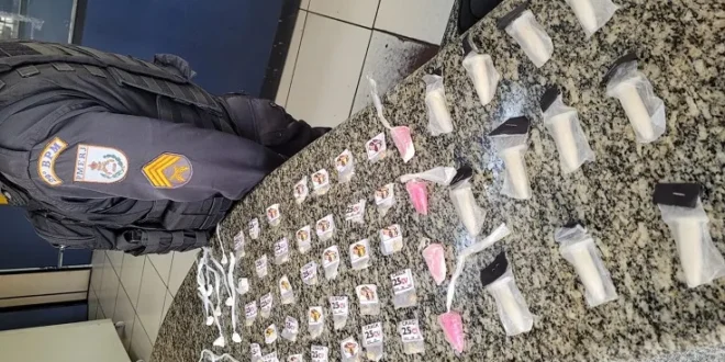 Durante buscas no muro de uma casa abandonada na Rua Castelo Branco, as equipes encontraram escondidos em um buraco, a sacola com 34 pedras de crack, além de 19 pinos e dez papelotes de cocaína, que segundo a informações, apontaram como sendo de responsabilidade de três elementos que haviam sido presos durante o final de semana.