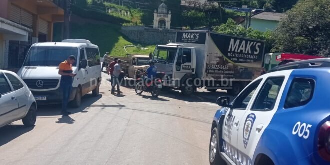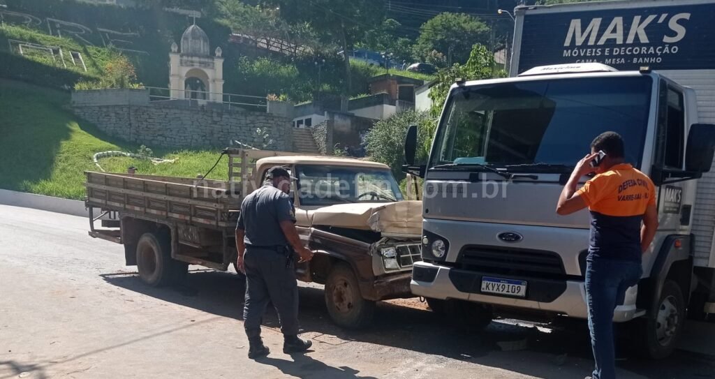 Pelo menos duas pessoas ficaram levemente feridas na manhã desta quarta-feira (13), no Centro de Varre-Sai. De acordo com informações de testemunhas, o caminhão Ford modelo F4000, teria perdido os freios na parte em declive da Rua Sebastião Alves Figueira, atingindo um ônibus da empresa Brasil, um Fiat Uno e outro caminhão baú. Com escoriações, os homens foram levados até o pronto socorro municipal, enquanto que a Guarda/Defesa Civil Municipal sinalizaram a área e acionaram a Polícia Militar, que assumiu a ocorrência.