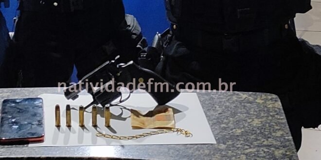 Alertados através de denúncia, militares do 29º BPM interceptaram o coletivo da Viação 1001 na Avenida Dário Vieira Borges, na entrada da cidade (altura do laguinho), encontrando nos pertences de um dos passageiros, um revólver calibre 38 com cinco munições intactas, escondido no interior de caixa de aparelho de som.