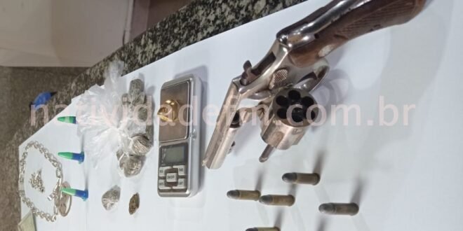 Alertados através de denúncia, militares do 29º BPM se deslocaram até a Rua José Clarindo dos Santos e com a autorização da namorada do suspeito, realizaram buscas pelo interior do imóvel, onde apreenderam o revólver calibre 32 com seis munições intactas, 11 tabletes pequenos de maconha, três pinos de cocaína e balança de precisão.