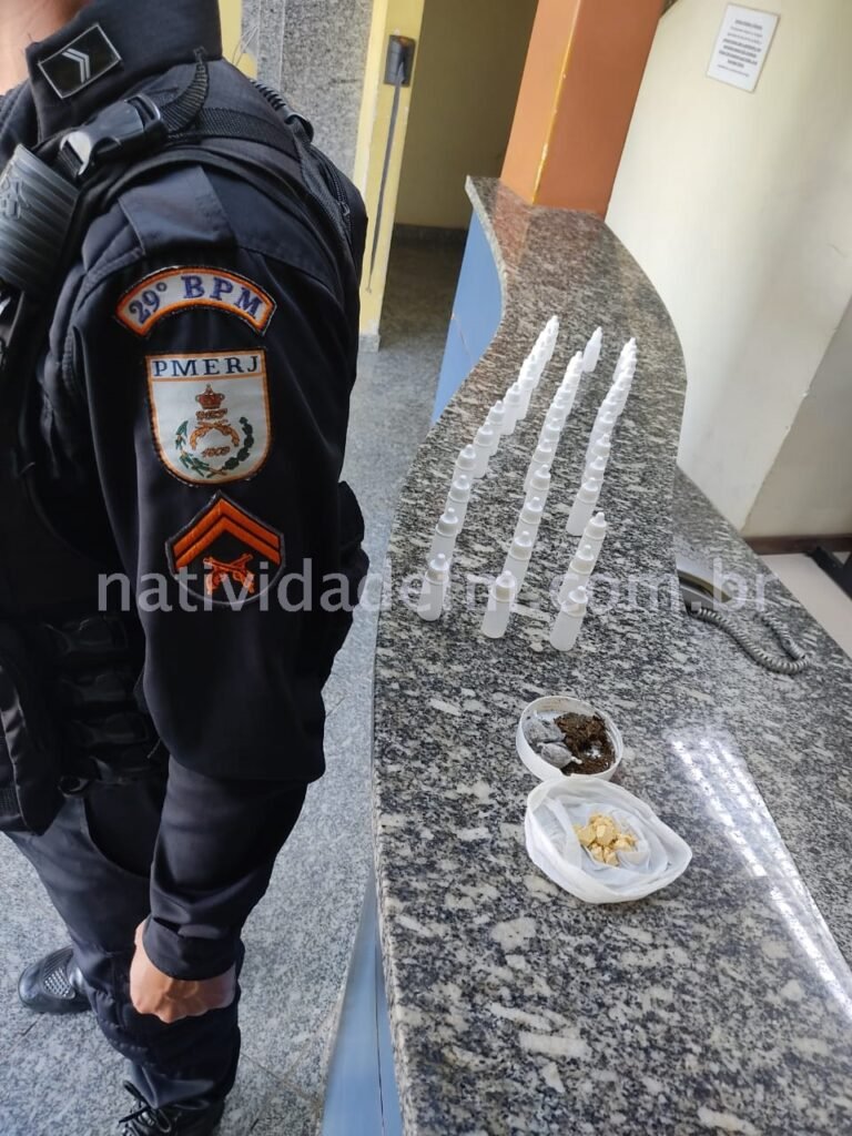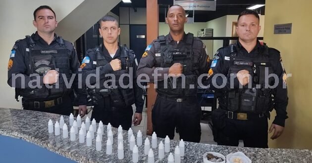 Militares do Patrulhamento Tático Móvel (PATAMO – 3ª Cia.), com o apoio do setor de radiopatrulha, aprenderam substâncias entorpecentes na manhã desta terça-feira (07), no bairro Santo Antônio (Grenville), Porciúncula.