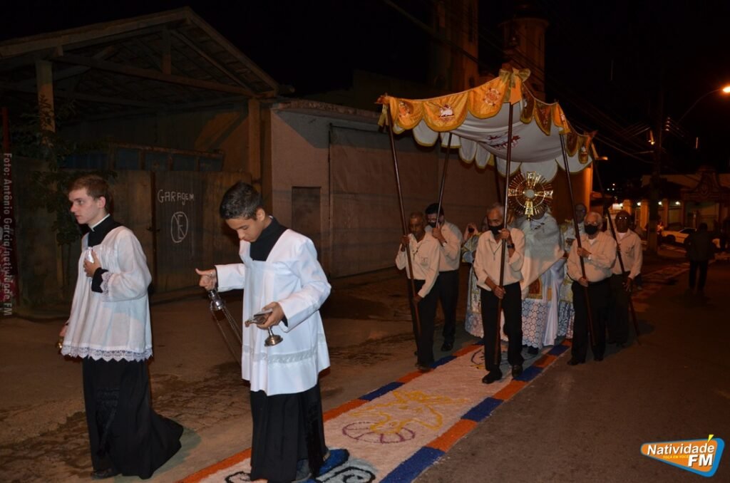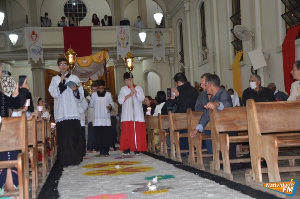 Após dois anos sem as comemorações, por conta da pandemia, a Paróquia Pessoal de Nossa Senhora das Graças, realizou no final da tarde desta quinta-feira (16), a Procissão Eucarística de Corpus Christie, que contou a participação de centenas de fiéis, que percorreram as centenas de metros dos tradicionais tapetes, confeccionados nas ruas próximas da paróquia. A cerimônia foi oficiada pelo Pe. Marco Antônio, acompanhado de outros sacerdotes da Administração Apostólica São João Maria Vianey.