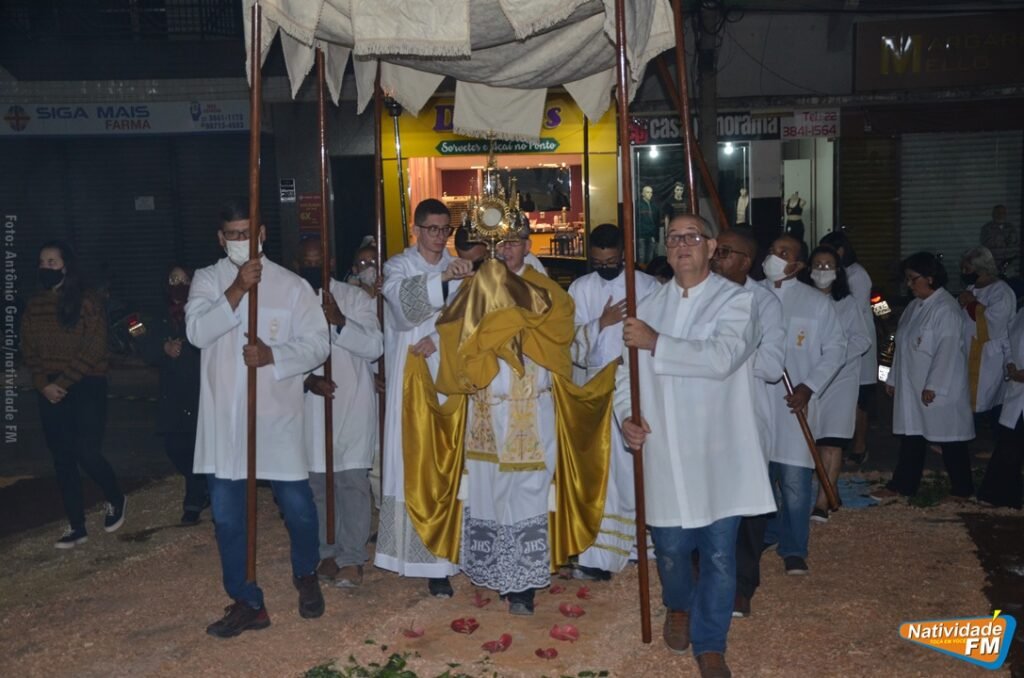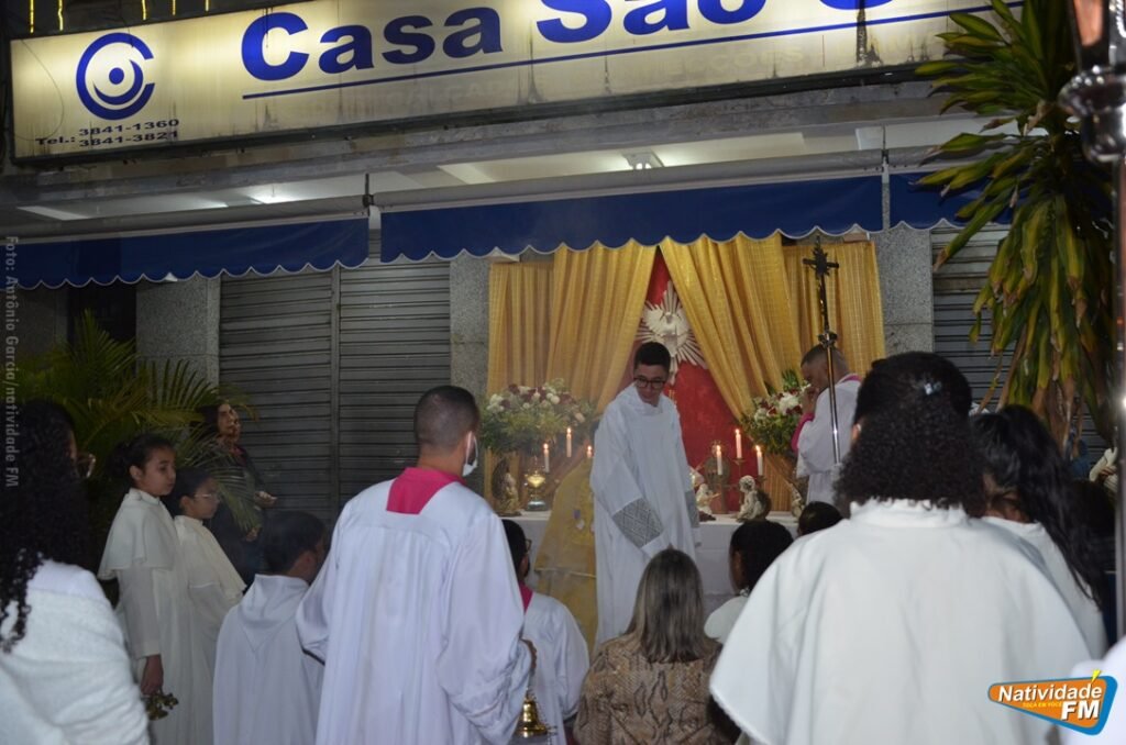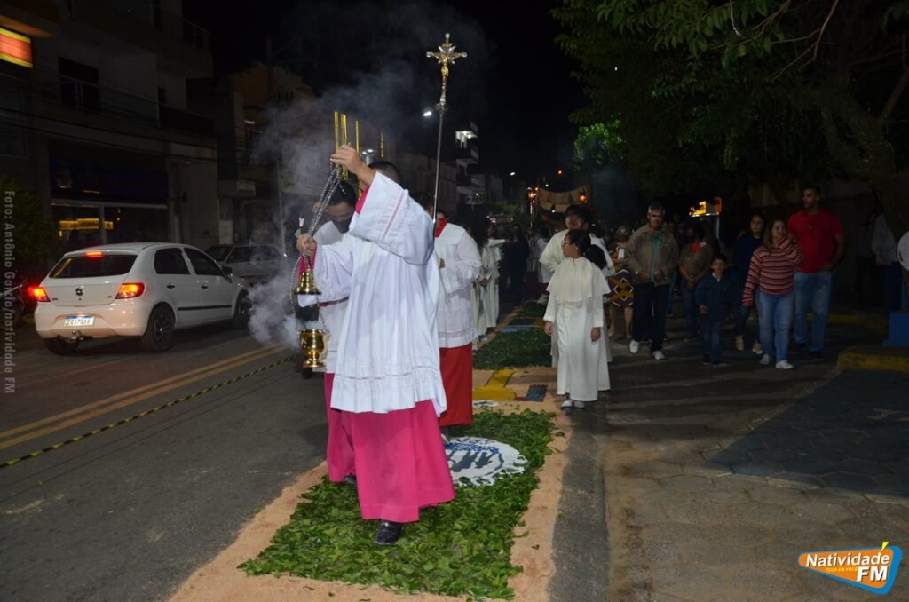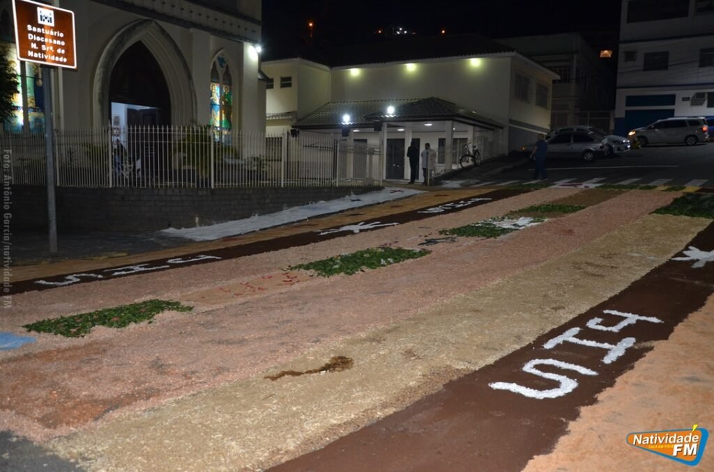No início da noite desta quinta-feira (16), fieis do Santuário Diocesano de Nossa Senhora da Natividade, percorreram as centenas de metros dos tradicionais tapetes confeccionados nas ruas centrais da cidade e celebraram o Corpus Christie. A cerimônia foi presidida pelo Pe. João Genes, acompanhado por grande número de pessoas. A Paróquia Nossa Senhora das Graças também realizou a celebração.