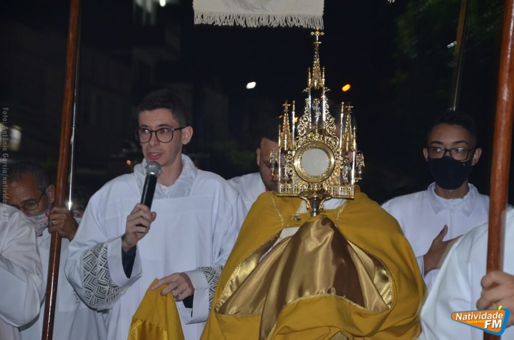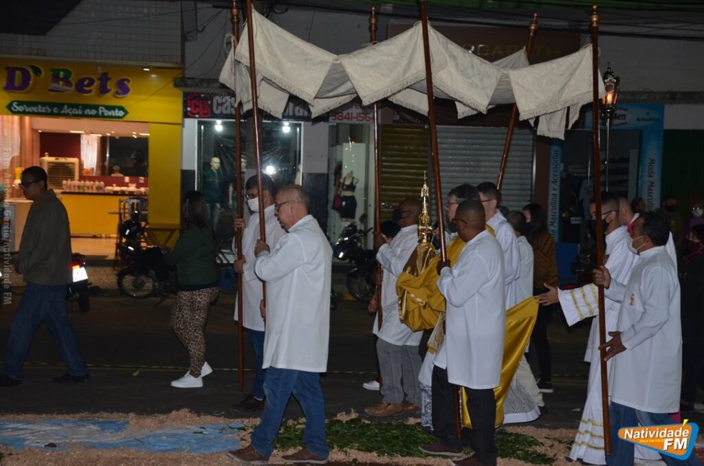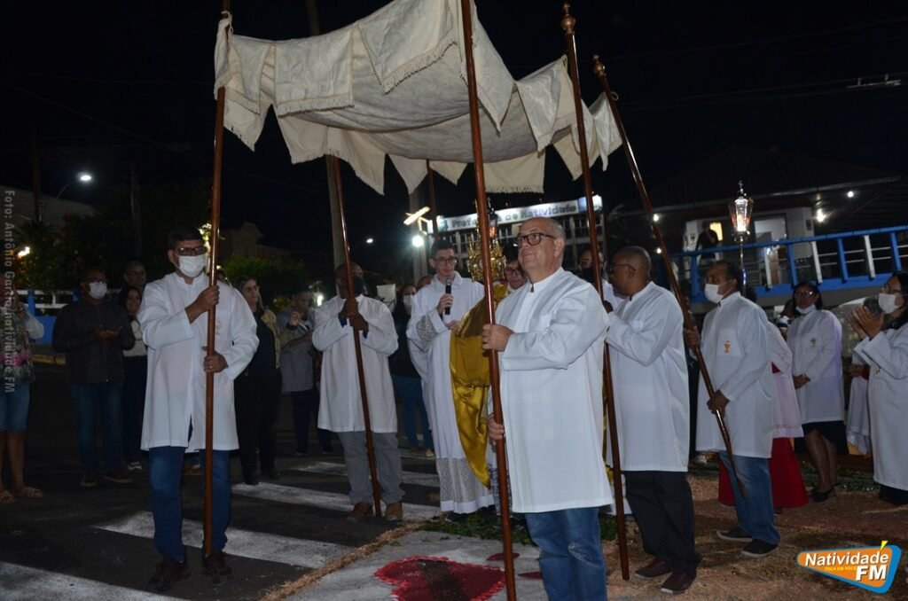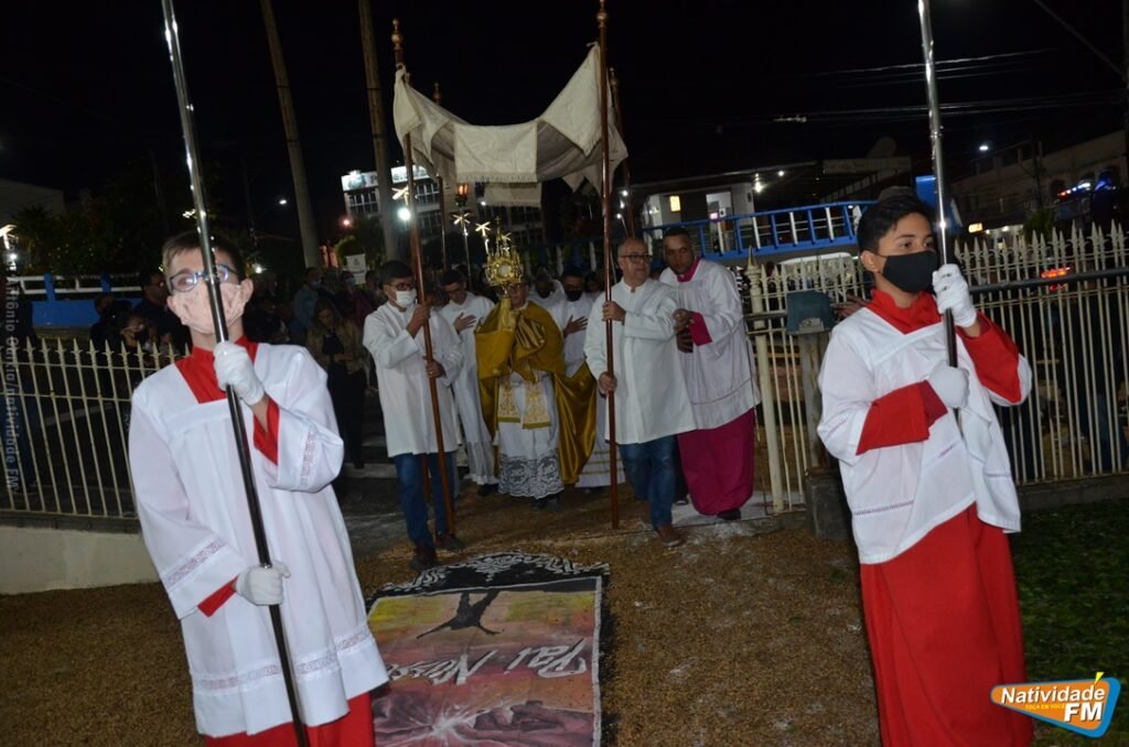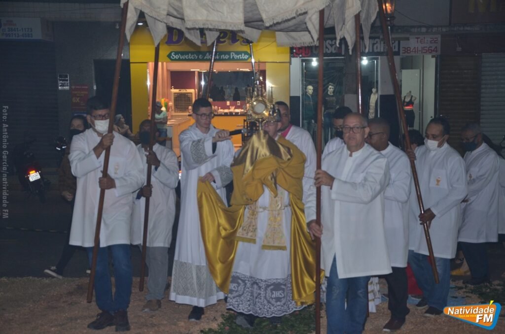 No início da noite desta quinta-feira (16), fieis do Santuário Diocesano de Nossa Senhora da Natividade, percorreram as centenas de metros dos tradicionais tapetes confeccionados nas ruas centrais da cidade e celebraram o Corpus Christie. A cerimônia foi presidida pelo Pe. João Genes, acompanhado por grande número de pessoas. A Paróquia Nossa Senhora das Graças também realizou a celebração.