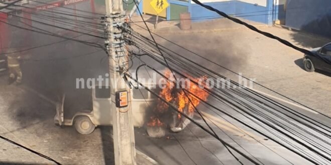 Uma Kombi de cor branca se incendiou na tarde desta segunda-feira (20), na Avenida Mauro Alves Ribeiro Júnior, no bairro Balneário, Natividade. O sinistro aconteceu próximo a um posto de combustíveis (Natividade Auto-Posto), quando as chamas tiveram inicio no compartimento do motor e tomaram a parte posterior do utilitário, que ficou parcialmente destruído. Bombeiros do destacamento 4/21 seguiram para o local e debelaram o fogo. A via chegou a ficar fechada por diversos minutos, mas não houve registro de feridos.