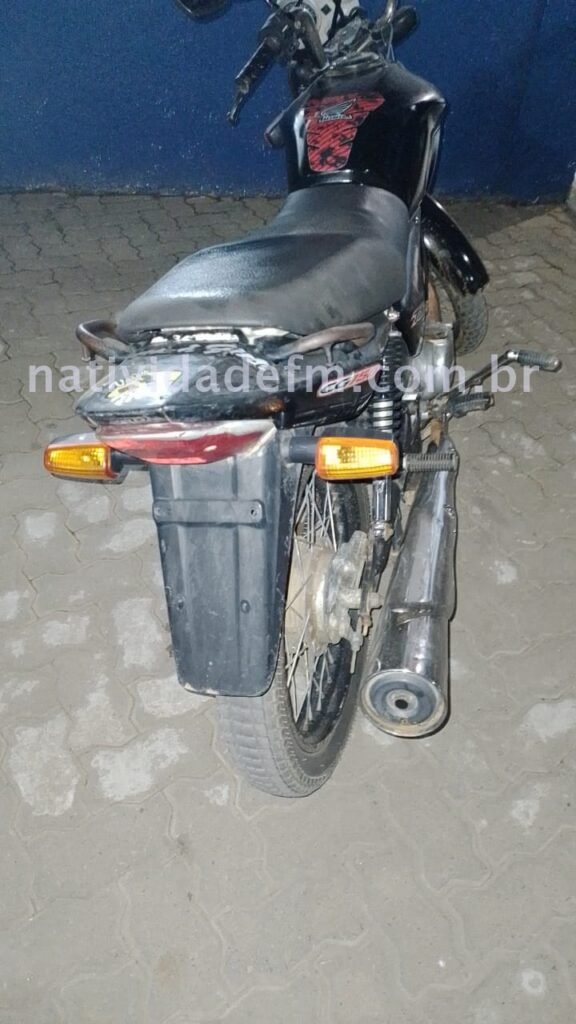 Os agentes ao chegarem ao local se depararam com o envolvido já de saída, visivelmente embriagado, acelerando uma moto Honda CG 150 preta – sem placa, documentos e com chassi raspado – quase se chocando contra viatura.