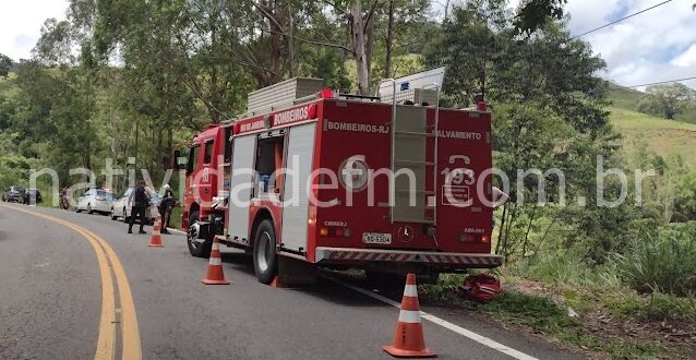 Bombeiros do destacamento 4/21 foram acionados pouco antes das 10h desta quinta-feira (29), por conta de acidente de trânsito na RJ 214, no trecho que liga os municípios de Natividade e Varre-Sai.