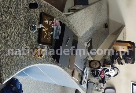 Foram iniciadas buscas e os suspeitos detidos às margens do Rio Muriaé de posse de três relógios; dois cordões; dois pares de brincos; dois pingentes; R$ 9; Playstation 4, jogo para PS4, controle, pedal Ferrari e volante para Playstation; notebook; aparelho celular; garrafa de whisky; bolsa; máquina de cortar cabelo com carregador; perfume; repetidor de internet; óculos de sol; par de tênis; maleta; caixa de som com wi-fi e um tablet.