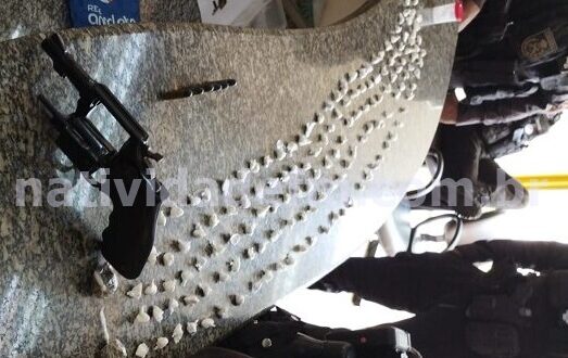 Após buscas por um terreno baldio na Rua Abílio Martins da Silva, os agentes encontraram o revólver de calibre 38 com seis munições intactas, além de 153 papelotes de cocaína e duas buchas de maconha.
