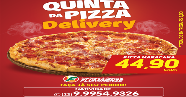 Participe da programação da Rádio Natividade e concorra a Pizza Maracanã da Lanchonete, Restaurante e Choperia Fluminense/Natividade. Ligue ou envie mensagem para (ZAP) 9 9898-0 104. Sorteio às 11h. Boa sorte!