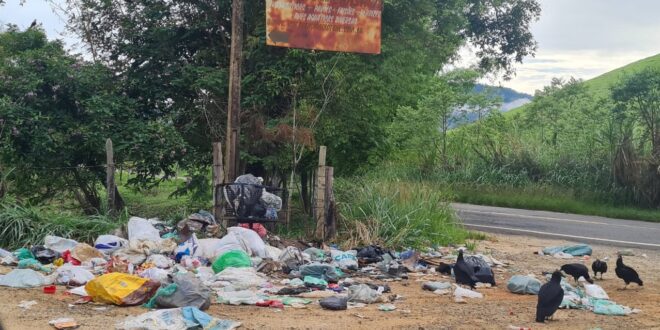 – É um descaso total! No local existe uma lixeira, que há muito tempo não é esvaziada e o que se vê é a formação já de um pequeno lixão! Ali é passagens de produtores rurais, além de um frigorífico, além de ser uma péssima imagem para quem passa na rodovia, – destacou um morador.