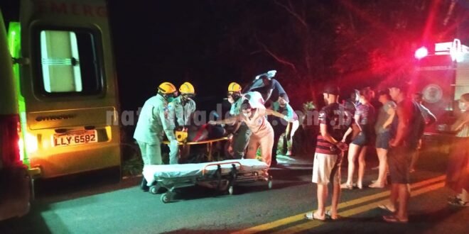 Por volta das 20h desta sexta-feira (27), um animal na pista causou acidente de trânsito na RJ 214, no trecho que liga os municípios de Natividade e Varre-Sai. De acordo com informações colhidas no local, o motorista do Fiat Palio Weekend/placa de Muriaé (MG), que seguia sentido à Natividade, foi surpreendido por uma vaca que atravessou a via na altura da Fazenda Amarela, tentou desviar, mas não conseguiu evitar o impacto – no qual o bovino morreu – e invadiu o acostamento, só não despencado de altura aproximada de quatro metros, pois ficou preso junto da cerca de arame. Sem graves ferimentos, mas escoriações no rosto, cabeça e com dores no peito e clavícula, o condutor e outro homem que viajava no carona, foram socorridos por bombeiros do destacamento 4/21 e socorrista do Hospital Natividade, até a unidade de pronto atendimento, onde permaneceram em observação.