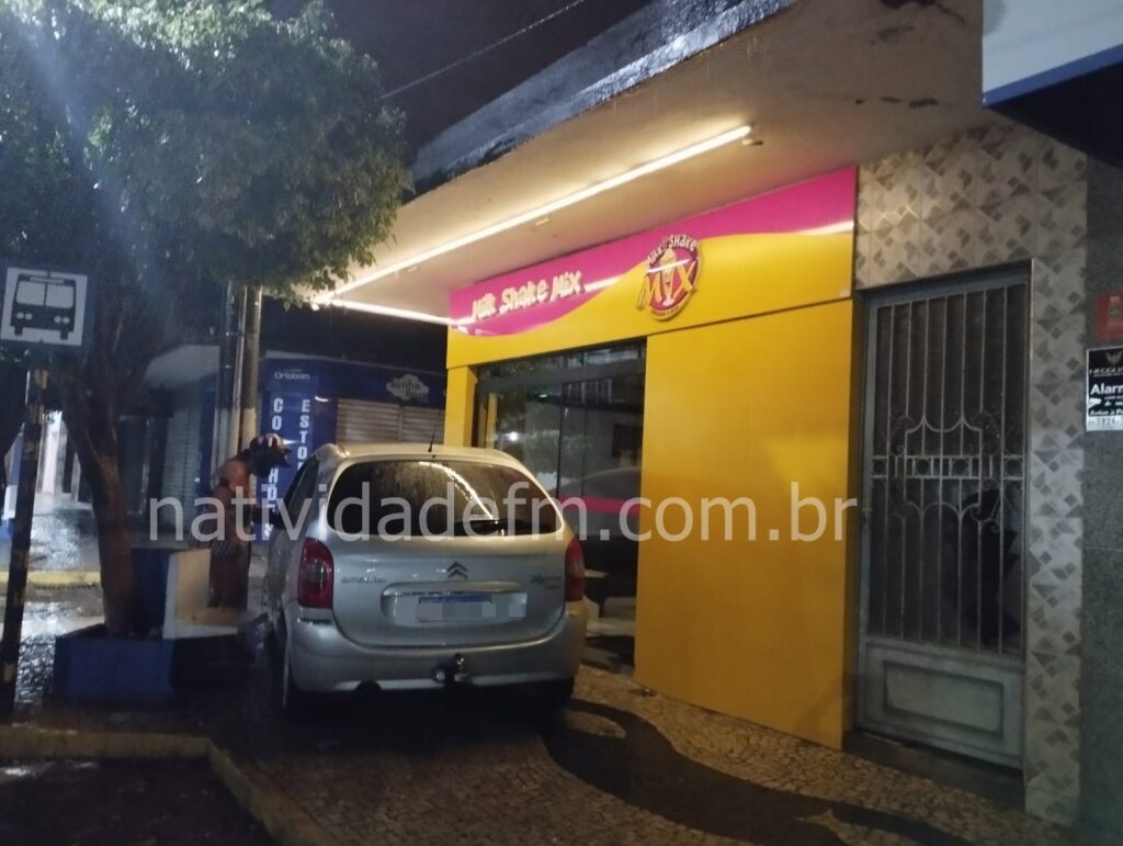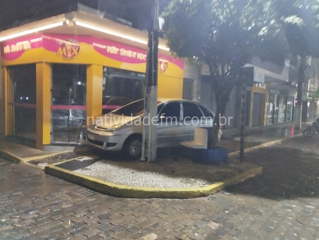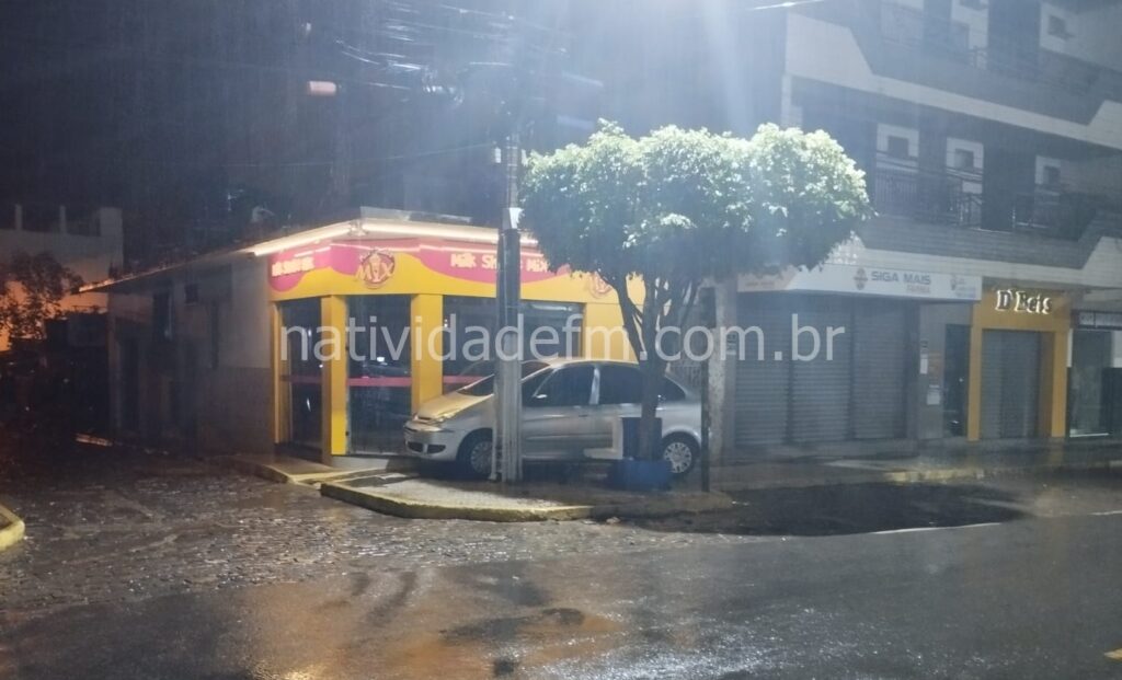 Um Citroen de cor prata, invadiu uma área de calçada na noite desta quarta-feira (28), no Centro de Natividade.