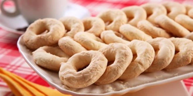 - Modele os biscoitos em forma de rosquinhas, coloque-os na assadeira reservada e leve ao forno por 10 minutos ou até dourarem levemente