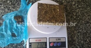 Ação deflagrada na manhã desta sexta-feira (12), por militares do patrulhamento Tático Móvel (PATAMO – 3ª Cia.), do 29º BPM resultou na apreensão de um tablete de maconha com 238 gramas e balança de precisão, no bairro Sindicato, Natividade. Os agentes verificavam denúncia que um elemento havia recentemente recebido a droga para venda e após diligências, o localizaram no distrito …