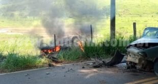 Dois veículos se envolveram em acidente no início da tarde desta segunda-feira (21), na RJ 230, zona rural de Porciúncula. De acordo com testemunhas, os automóveis teriam se chocado na altura da comunidade do Bate-Pau e com o impacto, um deles saiu da pista invadiu uma área de pastagem, pegando fogo e completamente destruído pelas chamas em questões de minutos. …