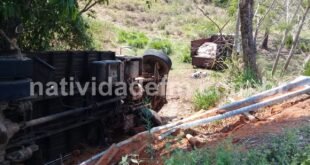 Um caminhão tombou no final da manhã desta terça-feira (29), na RJ 220, próximo dos limites dos municípios de Natividade e Itaperuna. O motorista teria perdido o controle da direção, saído da pista e invadido uma área de pastagem, na altura da “Serraria”. Não há registro de feridos e outro veículo recolheu a carga – de produto não informado – …