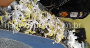 Denúncia de tráfico terminou com a apreensão de grande quantidade de entorpecente já pronto para a comercialização, no final da tarde desta quinta-feira (12), no bairro Santo Antônio (Grenville), Porciúncula. Militares do Patrulhamento Tático Móvel (PATAMO), realizaram buscas pelo interior de uma das residências na Rua Manoel Bertholino da Silva, onde se encontravam três pessoas, encontrando centenas de sacolas plásticas …