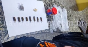 Denúncia de tráfico de entorpecentes na noite desta segunda-feira (27), deflagrou a ação de equipes do 29º BPM no Morro do Cristo Rei, Porciúncula. Após buscas pelo interior da residência alvo da verificação, os agentes localizaram uma bucha de maconha e outra de cocaína, fermento em pó, sacolas vazias, além de quatro munições calibre 32 intactas e outras quatro deflagradas. …