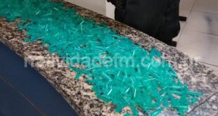 Em patrulhamento de rotina na noite desta segunda-feira (05), pelo bairro Grenville, Porciúncula, militares do 29º BPM apreenderam centenas de microtubos vazios em posse de um suspeito. O jovem, A.S.M.N., de 18 anos, estava na altura da praça central da comunidade, quando foi abordado e encontrado com ele, a sacola com 528 pinos, geralmente usados para acondicionar cocaína. Levado até …