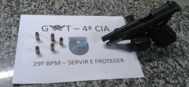 Policiais do Grupamento de Ações Táticas (GAT) da 4ª Companhia do 29º BPM apreenderam uma arma e detiveram um suspeito, numa das ruas que dão acesso ao Morro da Caixa D’água, na periferia de Italva, durante a madrugada desta quinta-feira (17). Após denúncia e depois de realizarem buscas, localizaram a pistola Taurus PT 58, com cinco munições, que estava próximo …