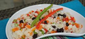 INGREDIENTES: 2 colheres (sopa) de óleo 2 xícaras (chá) de arroz lavado e escorrido 1 pimentão verde pequeno, cortado em tirinhas finas 1 pimentão vermelho pequeno, cortado em tirinhas finas 1 cenoura cortada em tirinhas finas 3 tabletes de caldo de galinha 1 xícara (chá) de uva passa preta MODO DE PREPARO: Aqueça o óleo e refogue o arroz junto …