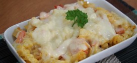 INGREDIENTES: ½ pacote de macarrão parafuso 2 ½ xícaras (chá) de leite 2 colheres (sopa) de maisena 4 colheres (sopa) de manteiga 1 cebola ralada 1 ½ xícara (chá) de queijo prato ralado ¼ xícara (chá) de queijo parmesão ralado 7 colheres (sopa) de aveia tostada em 2 colheres (sopa) de manteiga com sal e pimenta-do-reino MODO DE PREPARO: Cozinhar …