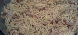 INGREDIENTES: 1 peito de frango cozido e desfiado 2 cenouras raladas cruas 1 lata de milho 1 lata de ervilha 150 g de passas Batata palha 4 colheres sopa de mainose 100 g de presunto cortadinhos MODO DE PREPARO: Em uma vasilha coloque o peito de frango, a cenoura, o milho, a ervilha, as passas, o presunto, a batata palha …
