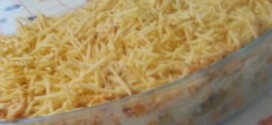 INGREDIENTES: 3 xícaras de arroz cozido 1 lata de legumes picados (milho, ervilha, batata, cenoura etc) 1 peito de frango cozido e desfiado 2 tomates picados em cubos 1 cebola média picada em rodelas 1 copo de requeijão 1/2 xícara de batata palha 1/2 xícara de queijo mussarela ralado 2 colheres de sopa de molho de tomate 1 colher de …